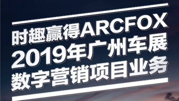 2019年11月,时趣凭借专业的态度和业务能力,赢得北京新能源汽车旗下ARCFOX品牌2019年广州车展数字营销项目业务。