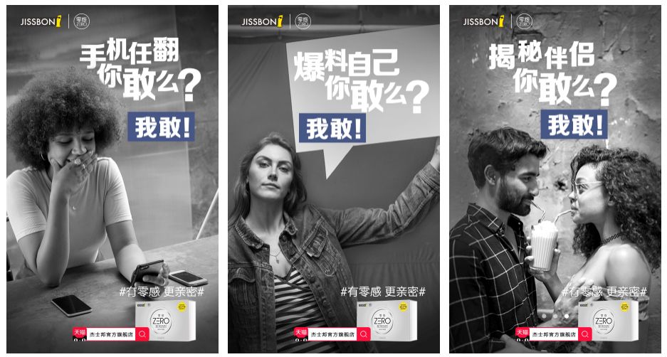杰士邦作为一个拥有悠久历史的中外合资的品牌,“国际化品牌”是一个有力品牌形象背书。恰逢国际版本制作了一系列“Dare to be closer”的品牌态度视频,而在国内,双11作为每年的促销盛会是一个不可错过的营销节点。